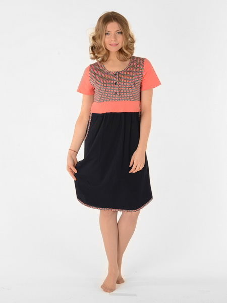 Описание: Туника комбинированная из набивной и однотонной кулирки. Круглый вырез горловины, внутренние карманы и низ изделия окантованы бейкой из набивного полотна.
