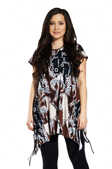 Описание: Стильная туника, выполненная из мягкого, струящегося трикотажа. Свободный силуэт, удобная округлая горловина и кокетливые завязки внизу.