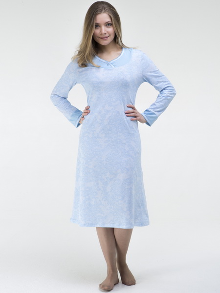 Описание: Ночная сорочка из набивной кулирки с фигурной кокеткой, длиной ниже колен. Рукав длинный.