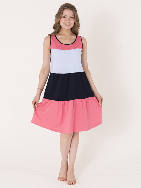 Описание: Платье-сарафан из однотонной кулирки, короткий. Круглый вырез горловины, ярусы со сборкой.
