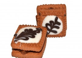 Сахарное печенье с прослойкой из вареного сгущенного молока, декорированное темной и белой глазурью