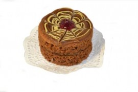 Медовый тортик круглой формы со сгущенкой, декорированный джемовой малиновой ягодкой