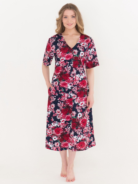 Описание: Халат из набивной кулирки, V-образный вырез горловины обработан обтачкой, внутренние карманы, сзади пояс.