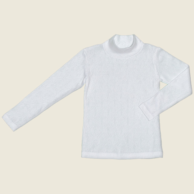 Описание: Водолазка школьная белого цвета, изготовлена из ажурного вязанного полотна с различной формой рисунка. 100 % хлопок. Ткань выглядит очень нарядно.